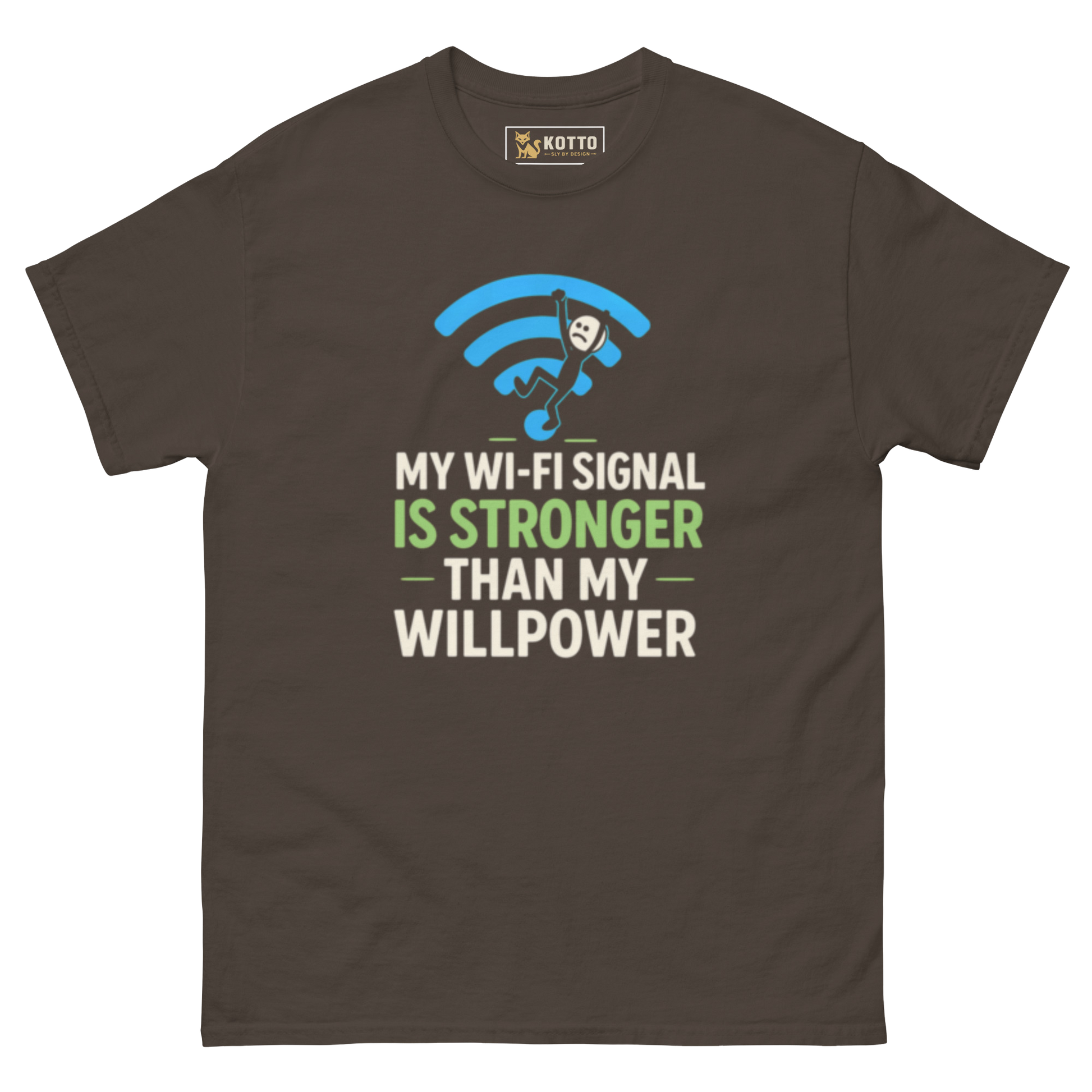 For the ones who say “one more episode” and mean five. The My WiFi Signal Is Stronger Than My Willpower tee is built for laid-back legends — comfortable, sarcastic, and unapologetically online. Clean, soft, and meme-level relatable, this shirt hits harder than your connection speed.
